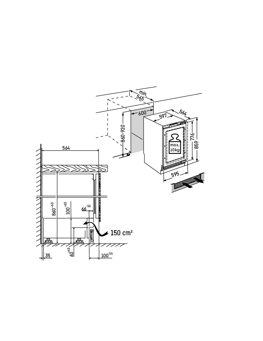 - Hauteur d'encastrement (cm)