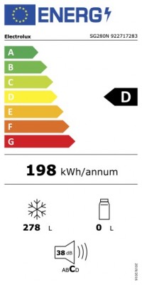 - Congélateur avec décongélation automatique - Classe d'énergie D (198 kWh/an) - Volume de congélation 278 litres - Autonomie en cas de panne 15 heures - Dimensions (H/L/P) 186/59.5/65 cm