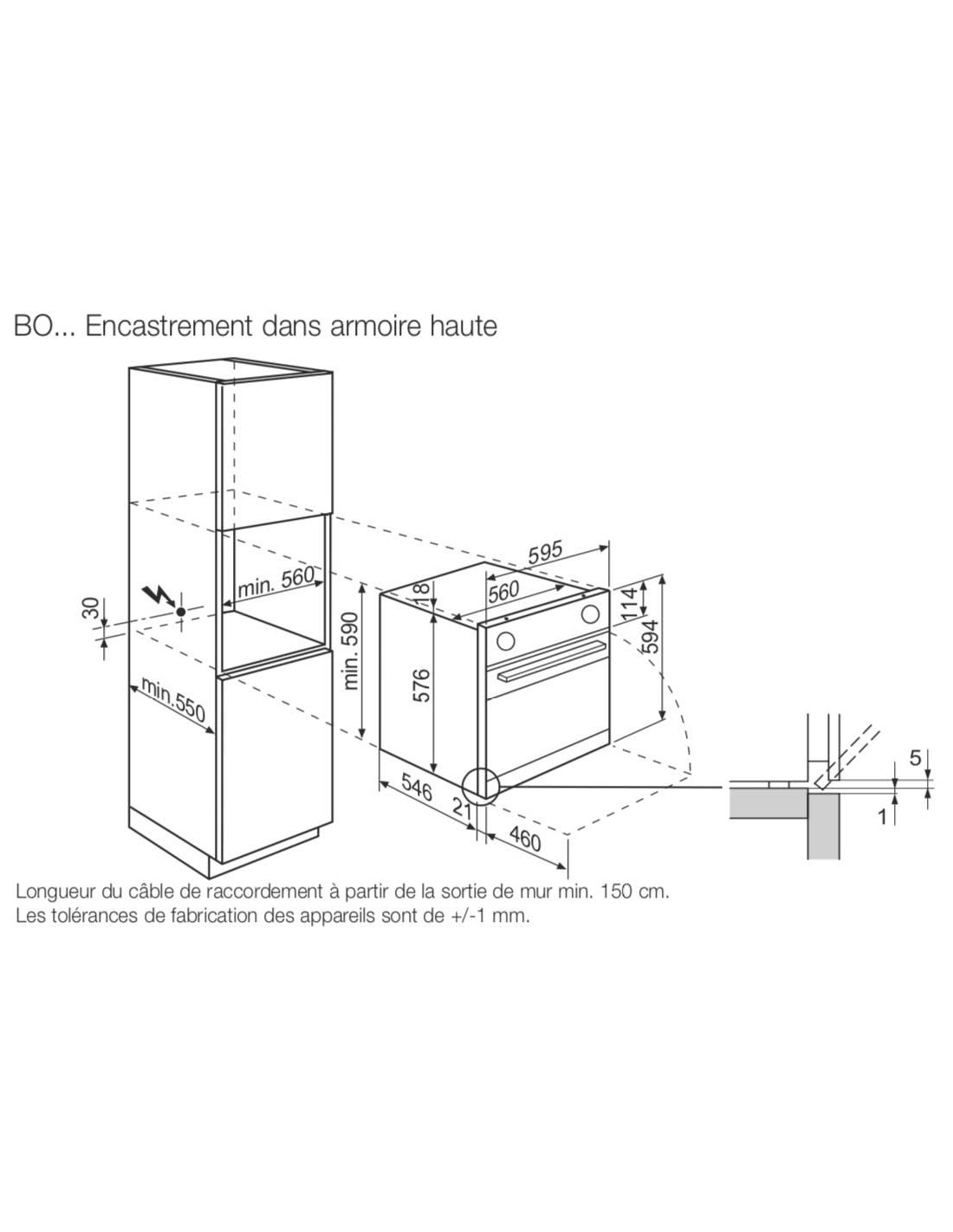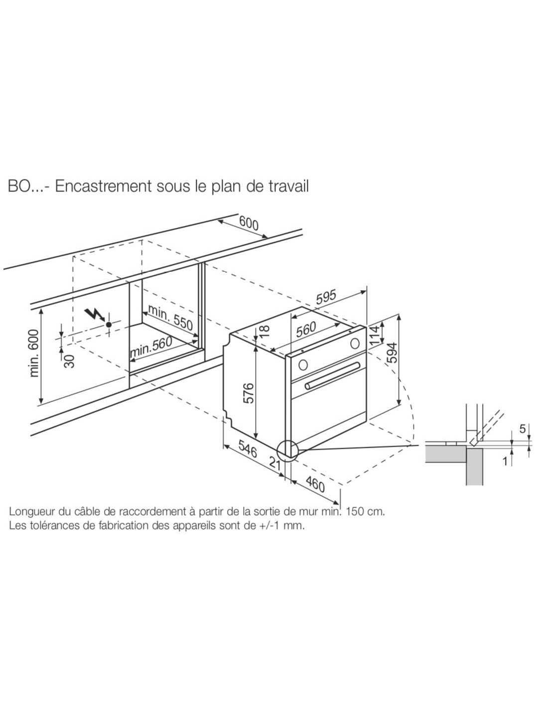 - Hauteur d'encastrement (cm)