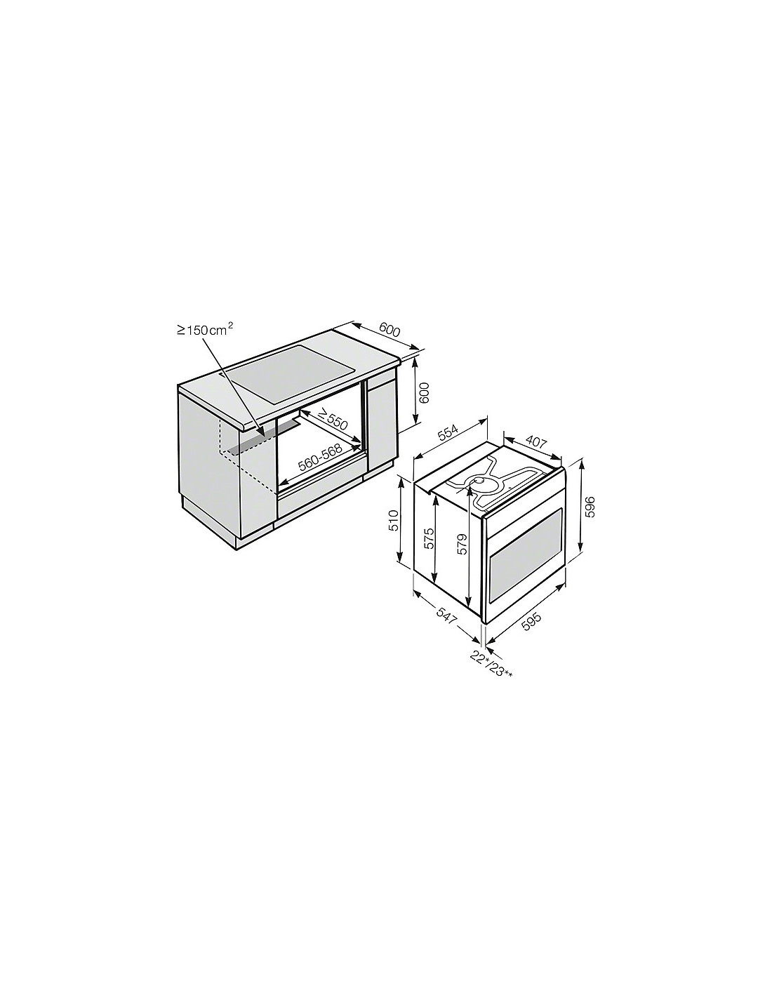 | Dimensions de niche (l x h x p) en mm | 560-568 x 590-595 x 550 |