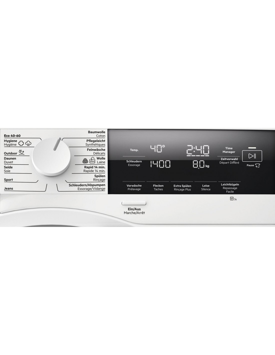 - Programmes de lavage: Coton, Facile d'entretien, Linge délicat, Laine, Lavage rapide 14min, Rincer, essorage/vidange, Jeans, Sport, Soie, Duvet, Outdoor, Hygiène, Eco 40°C - 60°C