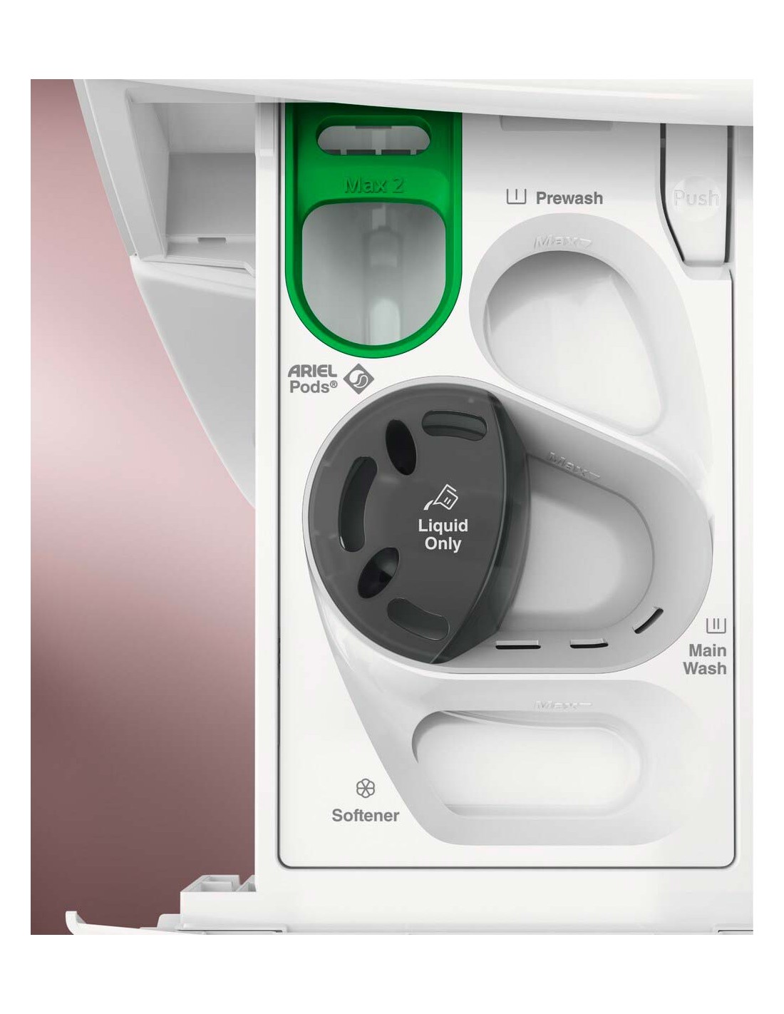 UniversalDose est un compartiment conçu pour les PODS® qui utilise des jets d’eau pour ramollir, percer et dissoudre entièrement les PODS®, pour une activation 60 % plus rapide que dans le tambour. Une meilleure puissance pour retirer les taches en lavage à froid ou cycle court d’une heure.* |