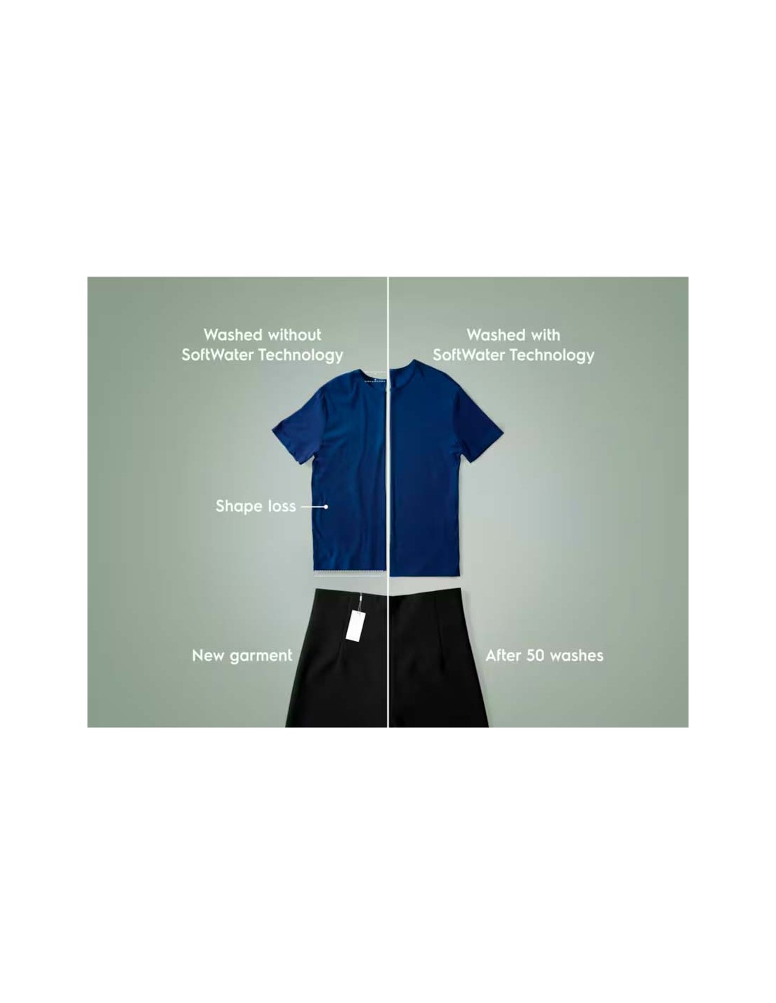 Le lave-linge avec adoucisseur d'eau intégré - protège la forme* et les couleurs**.Notre technologie avancée Softwater filtre les minéraux agressifs de l’eau, ce qui réduit la décoloration et la déformation* pendant les 50 premiers lavages**, permettant ainsi aux vêtements de durer plus longtemps et de mieux protéger leurs couleurs. *Selon un test interne de rétrécissement comparé de la technologie Softwater, effectué sur plusieurs tissus en coton lavés au cycle Coton avec de l’eau calcaire. **Selon un test externe de résistance des couleurs sur du polyester noir après 50 cycles à 30 °C avec la technologie SoftWater