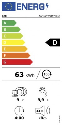 - Capacité 9 couverts- Classe d'énergie D- Consommation 9.9 litres- Consommation électrique 63 kWh/100 cycles- Départ différé max. 24 heures- Sécurité anti-fuite- Niveau sonore 44 dB(A)- Programme silencieux 42 dB(A)- Dimensions (H/L/P) 81.8/44.6/55 cm