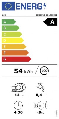 - Encastré 60 cm Norme Euro - Classe d'énergie A (54 kWh/100 cycles de lavage) - AutoDos dosage automatique - Nombre de couverts 14 - QuickPowerWash 58 minutes - Consommation 8.4 litres / 0.54 kWh - Niveau sonore 42 dB(A) programme silencieux 37 dB(A) - Fonction AutoOpen et AutoClose - Programme verres Perfect GlassCare - Hauteur de niche 84.5 cm minimum...