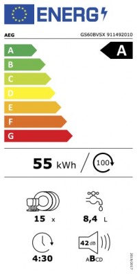 - Encastré 60 cm Norme Euro - Classe d'énergie A-10% (49 kWh/100 cycles de lavage) - AutoDos dosage automatique - Nombre de couverts 14 - QuickPowerWash 58 minutes - Consommation 8.2 litres / 0.49 kWh - Niveau sonore 41 dB(A) programme silencieux 37 dB(A) - Fonction AutoOpen et AutoClose - Programme verres Perfect GlassCare - Hauteur de niche 84.5 cm...