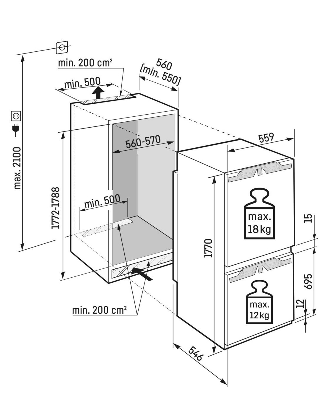 | Dimensions de la niche hauteur/largeur/profondeur | 177,2 - 178,8 / 56 - 57 / 55,0 cm |