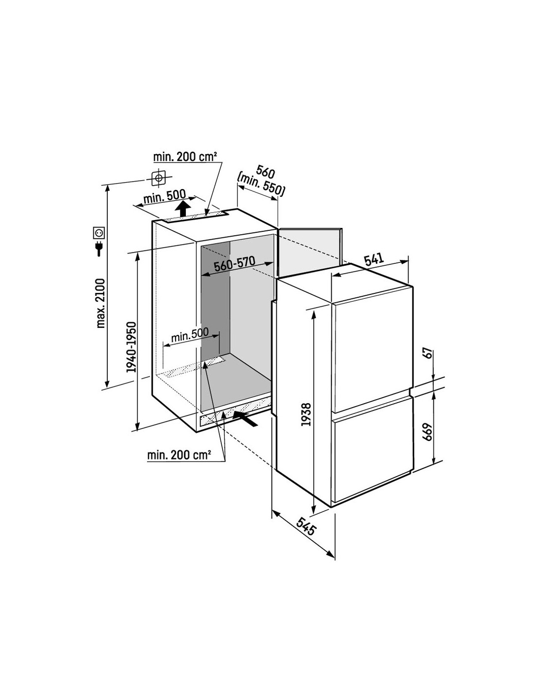 - Hauteur d'encastrement (cm)