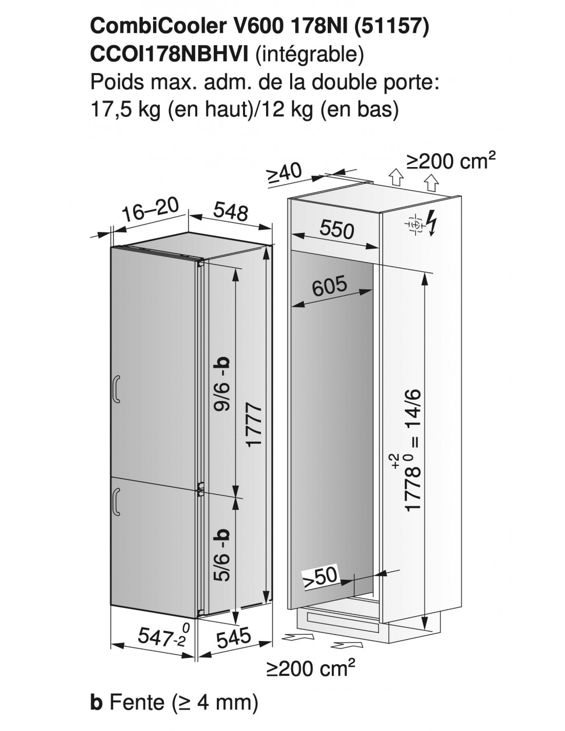 Réfrigérateur encastrable ZUG CombiCooler V600 178NI 60 (remplace Prestige 60i)