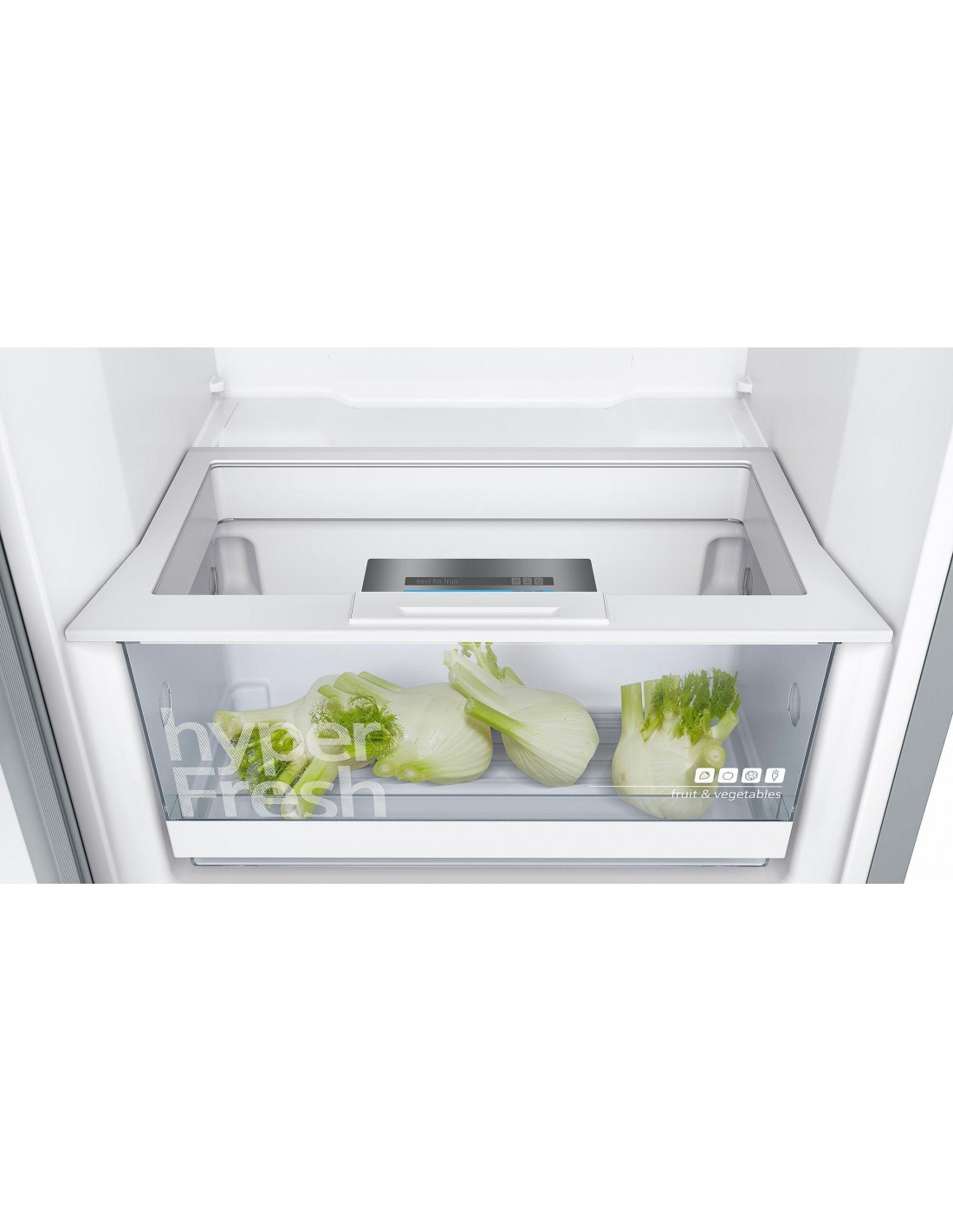 Avec le tiroir hyperFresh, vos fruits et légumes sont conservés dans un endroit spacieux et bénéficient d'un taux d'humidité idéal. Vos produits conservent leur fraîcheur et leur saveur, ainsi que toutes leurs vitamines et leurs nutriments.
