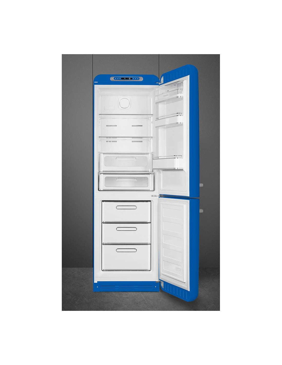 Le SMEG FAB32 est un réfrigérateur combiné rétro qui ajoutera plus de couleurs à votre cuisine. Il possède une zone 0 degré dans laquelle vous conserver la viande, le poisson, les fruits et les légumes. Ce tiroir a un volume de 30 litres, vous pouvez donc y ranger plusieurs produits alimentaires. Le compartiment de réfrigération possède un volume de 234 litres. De ce fait, l'appareil est adapté à un ménage de 3 à 4 personnes. Le compartiment de congélation dispose d'une fonction de congélation rapide. Sélectionnez-la quand vous congelez les restes du souper. De cette manière, ceux-ci conserveront mieux leur goût et leurs vitamines.